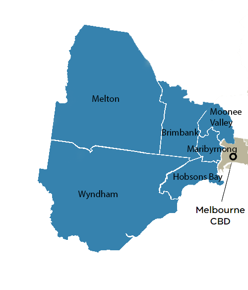 West Melbourne: Melton, Brimbank, Maribyrnong, Moonee Valley, Hobsons Bay, Wyndham